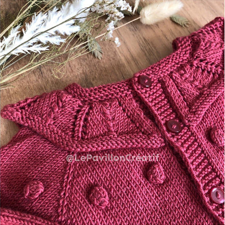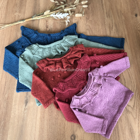 Knit yourself this pretty cardigan for a baby or a little girl. choose the size among the 7 sizes and its 2 collars (voluminous or flat) and with the wool and the colors of your choice.